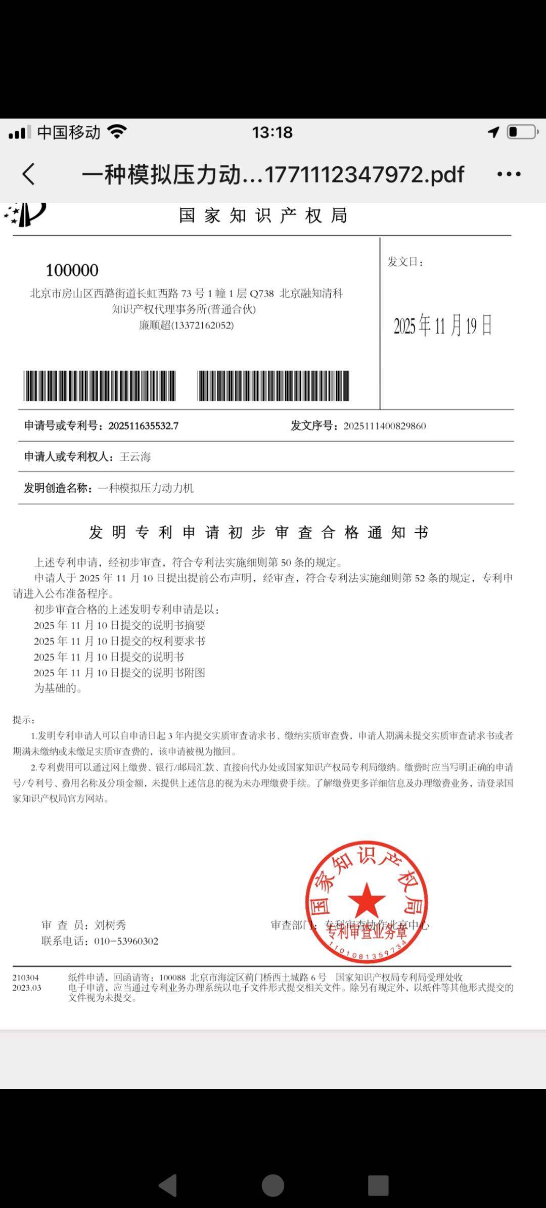 产品已开发完成,申请专利,初审已过,专利号202511535532.7