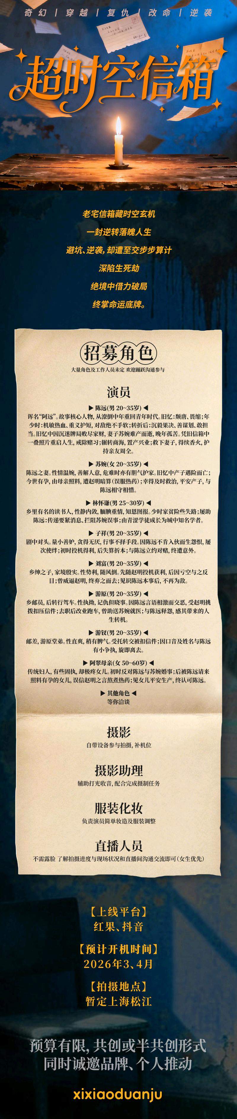 已完成剧本的编写,版权已经在手上,随时可以开拍,以敲定部分演员。